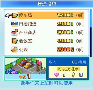 前期有好友,基本无脑推,不需要休息,所以设施用的不多,公园,便利店,这两个可以建。