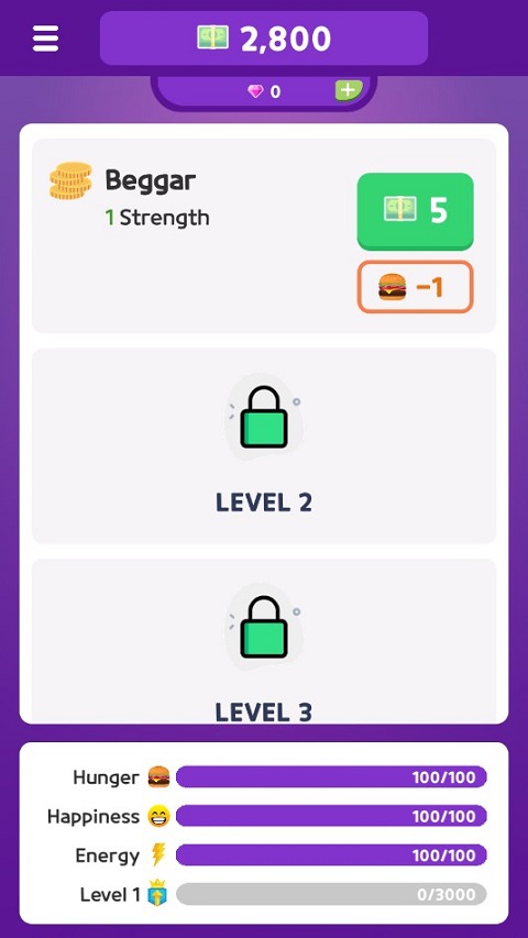 游戏玩法主要以文字结合图形的方式,若想在虚拟的世界里生存,要满足健康、财富、住所、食物基本要求。财富是玩家开启往后生活的重要资源,前期主要兼职打工赚钱,随着财富值的上升,你可以自我学习,提升各项技能;还能饲养萌宠,带来无尽欢乐,甚至你也可以更换生活环境,为心爱的小屋添加新的装饰。除了这些豪车、世界巡游以及兴趣爱好的培养,均可在雄厚的财富值下进行。更多玩法,更逼真的人生模拟器等你探索,感兴趣的玩家可千万不要错过哦!