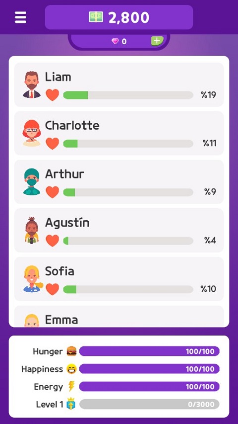 刚开始你可能是个青少年,父母会在一段时间后让你独立生活。为了赚取更多财富,你需要先做兼职工作然后通过自我学习提升技能。随着收入增加,你可以买豪车、环游世界,甚至建立自己的公司。另外,游戏里的社交系统也很丰富,可以交朋友、谈恋爱结婚生子。