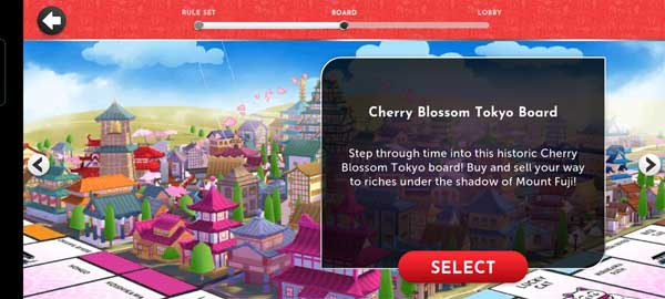 4、接下来到达的位置就是樱花东京板,走进历史悠久的樱花东京板!在富士山的阴影下买卖你的财富之路!点击下方的select开始设置难度并开始游戏。