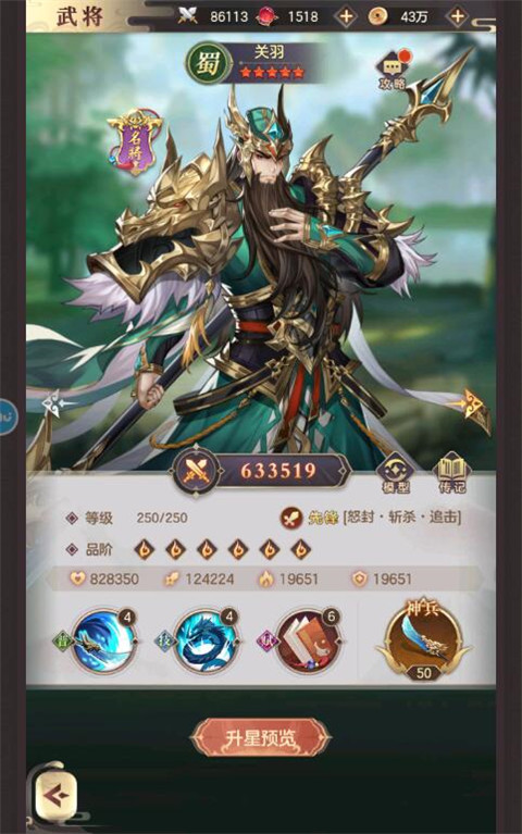 6、这样升级后就可以有效地提升武将的生命、物防或者攻击力等属性了