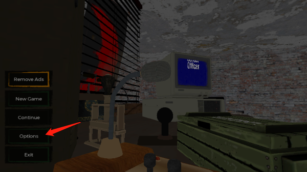 1、首先打开在本站下载好的游戏,进入到主页面时,点击倒数第二行的设置即可,称之为:optinos,也是这个游戏的设置选项。