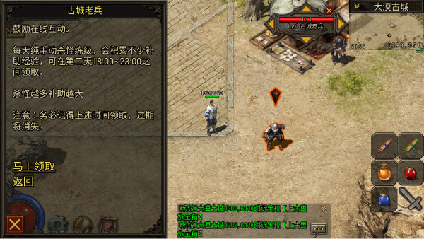 5、各位勇士们到了31级之后,在武器铺老板处领取金矿任务,3个金矿换5000经验。7个金矿换2万经验,15个金矿换4万经验,每天一次