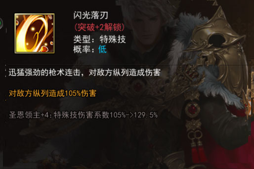特殊技:迅猛强劲的枪术连击,对敌方纵列造成105%/129.5%伤害