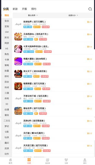 2、点击下方分类页面有变态版和定制版以及折扣版游戏等很多游戏分类