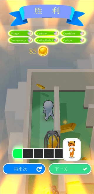 3、在游戏中运用自己灵活的走位来躲避寻找者的追捕,迷宫一样的游戏地图就是你最好的逃脱机会。