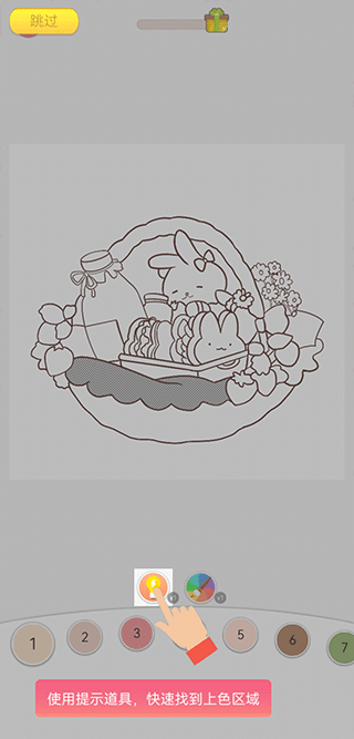 4、如果找不到阴影区域时,可以使用下方的提示道具,快速找到上色区域