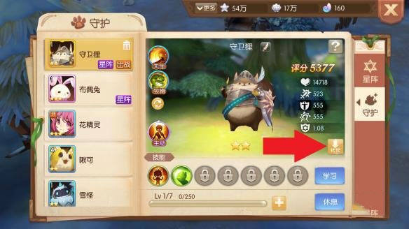 3、在守护界面点击下图箭头所指的转换按钮,进入转换界面。