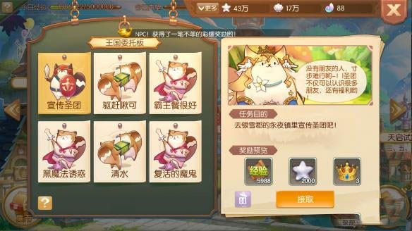 3、在这里玩家可以看到有许多不同的任务需要玩家去完成,玩家还可以这些任务进行删减,接取哪些自己想要做的任务。