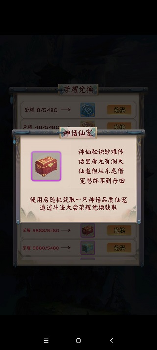 神话宠可通过参与斗法后荣耀兑换