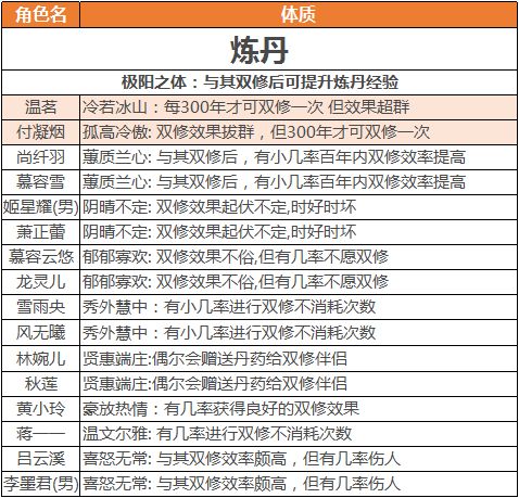 极阳之体:与其双修后可提升炼丹经验