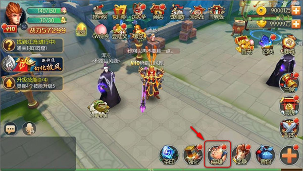 在【主界面】中,点击【英雄】按钮即可进入英雄界面!