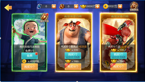 高级英雄召唤:获取A-S级英雄完整体或者碎片