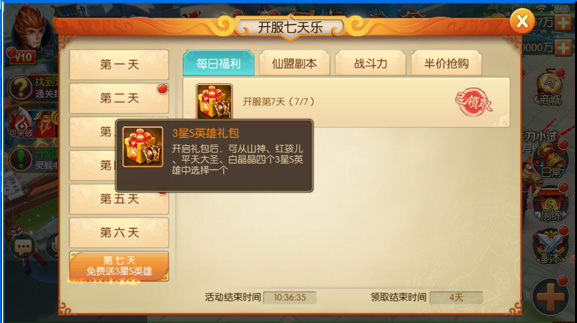连续登入奖励:赠送SS级英雄齐天大圣。