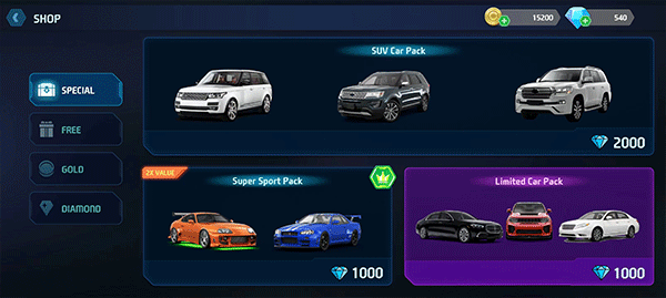 2、在商城中可以购买更高等级的车辆;