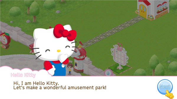 4、跟凯蒂猫一起来建造一个精彩的游乐园吧,点击下一步继续;