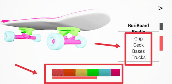 3、然后依次为Grip、Deck、Bases、Trucks选择你喜欢的颜色,并设计出独一无二的滑板