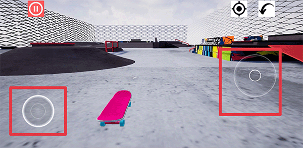 5、进入游戏后就可以使用左右两个遥杆操控滑板在地图中滑行,过障碍,施展技术