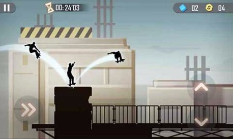 暗影滑板安卓版是一款剪影风格的滑板跑酷游戏,游戏以横版卷轴闯关的方式展开,壮阔的高楼大厦,绿草林荫的公园,花红酒绿的夜景,看似平静的城市背后,却隐藏着令人惊讶的极限运动。玩家在游戏中脚踩滑板,不断向前滑行,跳跃躲避各种复杂的障碍物,做出炫酷华丽的空中动作,体验极限跑酷运动的精彩刺激。目前暗影滑板手游共有四大场景,四十个关卡,每个关卡都充满挑战,挑战过程中还有数十种有趣的物品供你收集,喜欢跑酷游戏的玩家赶快加入进来吧。