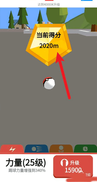 最后足球落地后就可以看到当前得分,并且获得金币奖励。