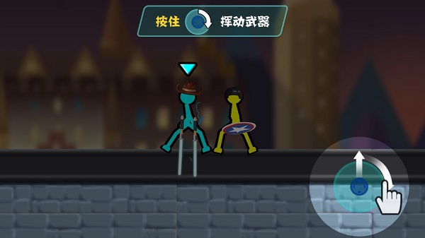 1、玩家在游戏中操控一个火柴人,利用简单的横版摇杆操作操控火柴人进行热血格斗。2、玩家在游戏选择火柴人搭配上顺手的武器后,进入格斗场景与敌人进行格斗;