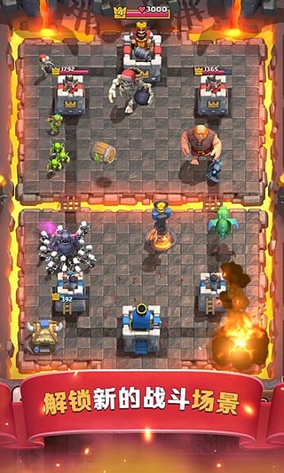与全世界的玩家进行实时对战,击败他们,赢取奖杯解锁宝箱以获得强大的新卡牌,并升级你现有的卡牌