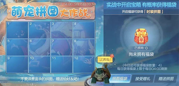 《风云岛行动》的宠物都有着与之相配的可爱时装,在5月8日4:00-5月15日3:59这段时间内,通过实战对抗开启宝箱,有机会获得福袋。福袋开启后就能获得时装拼图,集齐一套碎片就能为玄武直接换取一套好看的时装。