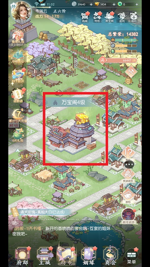 7、万宝阁控制着所有小建筑的等级上限,万宝阁提升的同时所有小建筑基础收益也会增加