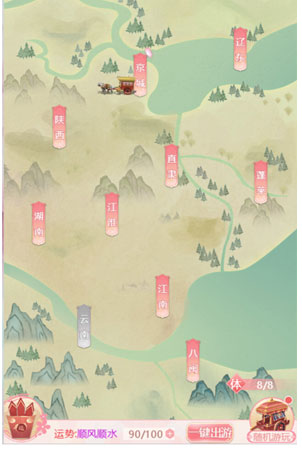 1、久居深宫难免无趣,小主们自然要格外珍惜出宫游玩的机会,说不定就有一段艳遇呢~2、游玩分别有京城、直隶、辽东、江淮、江南、陕西、湖南、云南、八闽、蓬莱十个区域,除京城外其他区域需要小主的等级达到要求才可以解锁哦、当区域可以解锁时,可以点击消耗一定的资源解锁该区域。