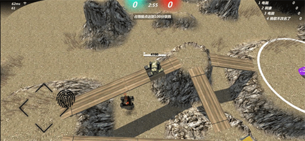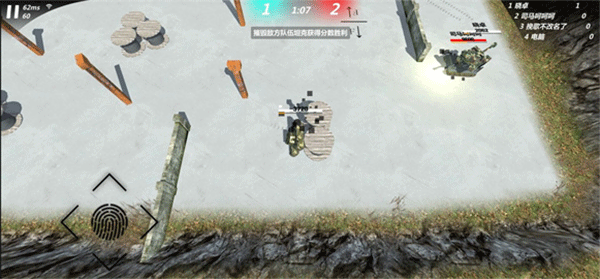 1、进入游戏后,玩家可以使用左侧的虚拟轮盘控制坦克移动;