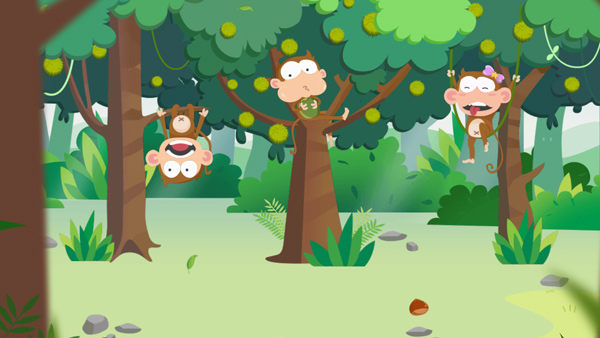 按住地上的板栗,每一个板栗拖给一个猴子。