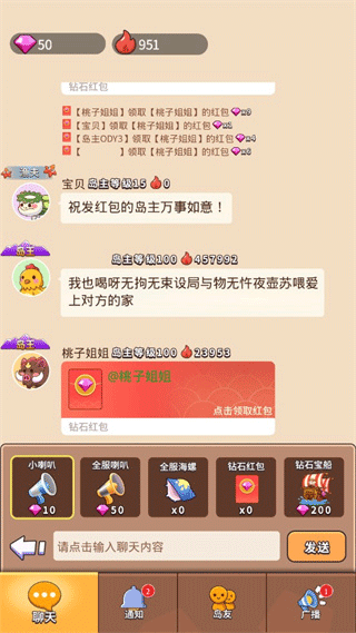 3、在岛友当中玩家可以去抢红包,真实的模拟了现实生活中的聊天系统,里面的红包还不少哦