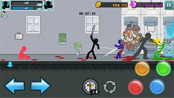 从操作机制来看,《愤怒的火柴人5》采用了经典的虚拟摇杆加技能按钮的组合方式。这种设计在保证操作便捷性的同时,也为玩家提供了丰富的战术选择空间。特别是连招系统的设计堪称精妙:通过合理搭配方向键与攻击键的组合,玩家可以轻松实现多样化的连击效果。