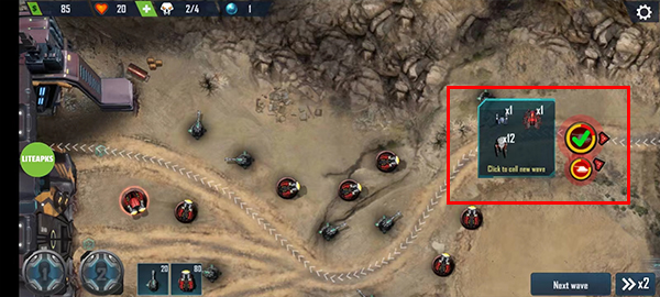 4、你需要不断设置炮塔守护基地,如果需要改变塔防策略位置,可以长按炮塔将炮塔移走,置入新升级的炮台。