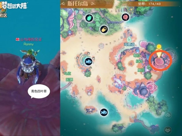 然后租赁坐骑,到斯托尔岛坐标174.143捡起青色四叶草完成任务。具体位置如下图: