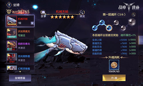 1、科幻坐骑 降临宇宙孕育在艾尔斯星球中最古老的生命魂兽,可以与主人达成近乎完美的默契。其中最为惊艳的当属红色品质坐骑“机械天鲸”。机械天鲸拥有强大的飞行续航能力,而厚实的皮肤既是它的护盾,也可以让它更为迅速的适应高低气压等恶劣的环境,生存天赋点满。