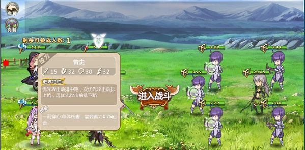 2、后排下路的的弓箭手伤害很低,速度很快,可以给我方战姬提供能量回复,因此可以把攻击力高的战姬放到前排下路(建议放关羽)