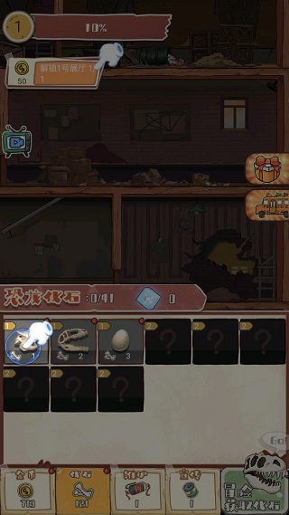 建设完成展厅后,点击“化石”,可以在恐龙化石里解锁不同种类的恐龙化石标本。