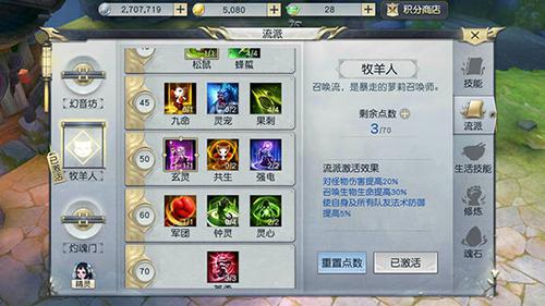 为提高一定的生存,结界依旧带着加防加血。清心同理,解控回血且(灵体)减伤20%,提高生存。法术伤害(引灵)、法术致命一击(激活)可根据自身需要取舍。