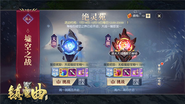 新奇挑战激烈纷呈,珍稀奖励天天放送,还有荣誉排行等你争夺!《镇魔曲》墟空之战全新篇章“绝灵苑”已上线,天命者们,赶快召集队友进入其中,赢取属于你们的奖励吧!