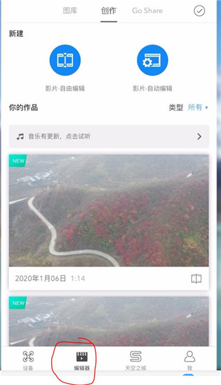 一、编辑首先进入djigo4app,点底部的“编辑器”: