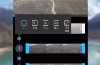 点击两段视频之间带白斜线的小圆圈(下图红圈内的图标)可以添加转场效果: