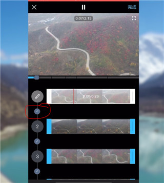 在手机上选择需要编辑的几段航拍素材,然后点开始编辑进入视频编辑界面: