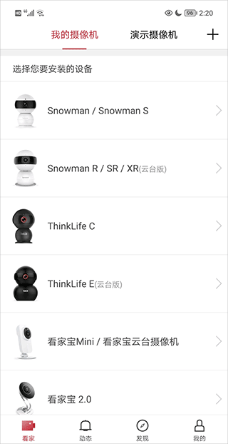 1、打开联想看家snowman安装最新app,在“看家”中选择并点击你要安装的设备;