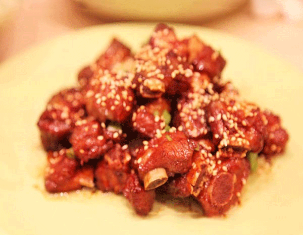 2、取一大碗,放入排骨,加盐、鸡精、老抽酱油、生抽、白砂糖、胡椒粉、料酒、姜丝。3、拌匀后腌制30分钟以上。