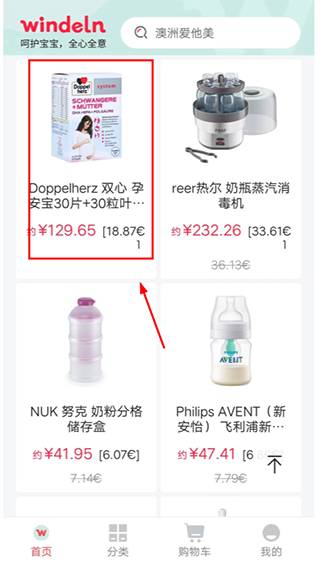 1、打开德国w家app,选择自己需要产品