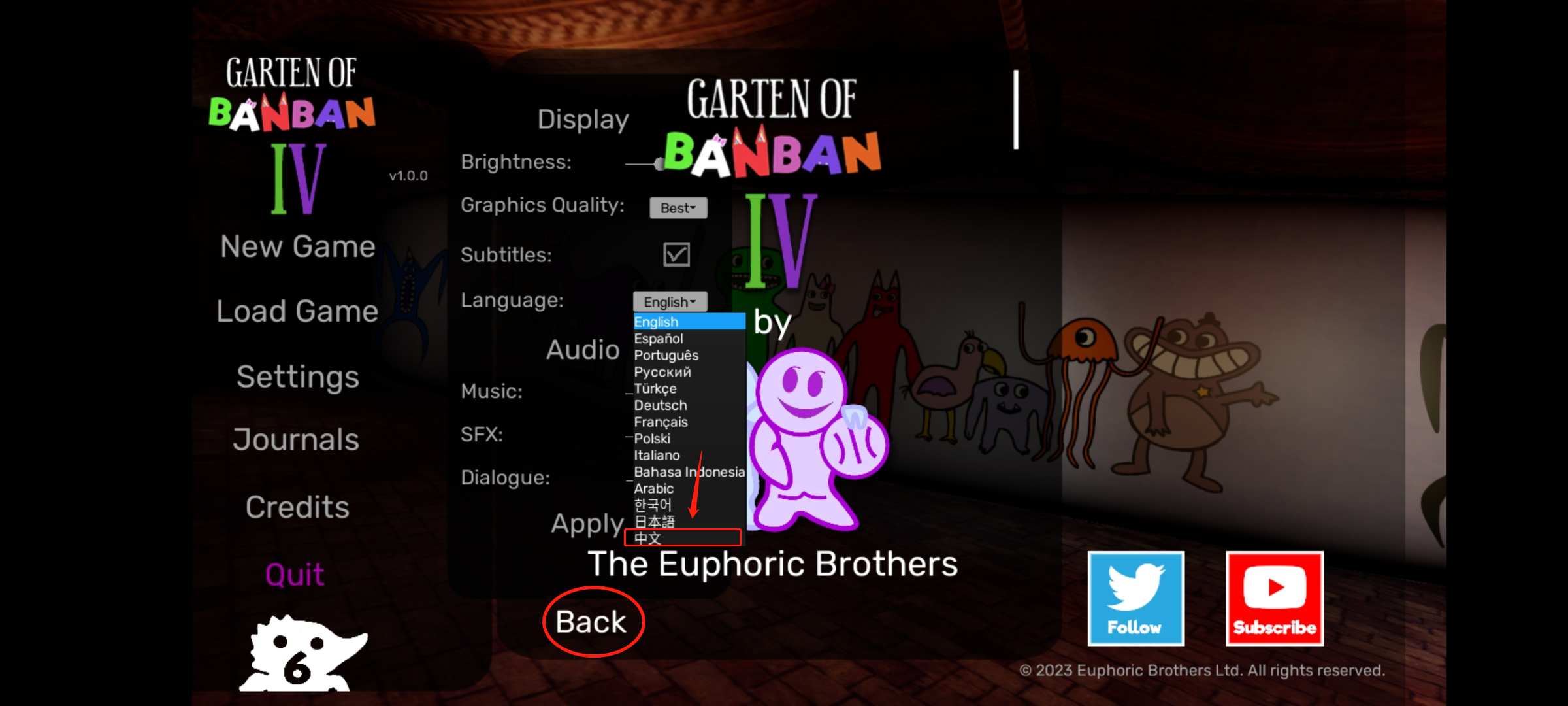 3、点击最下面的【中文】,再依次点击“Back”应用