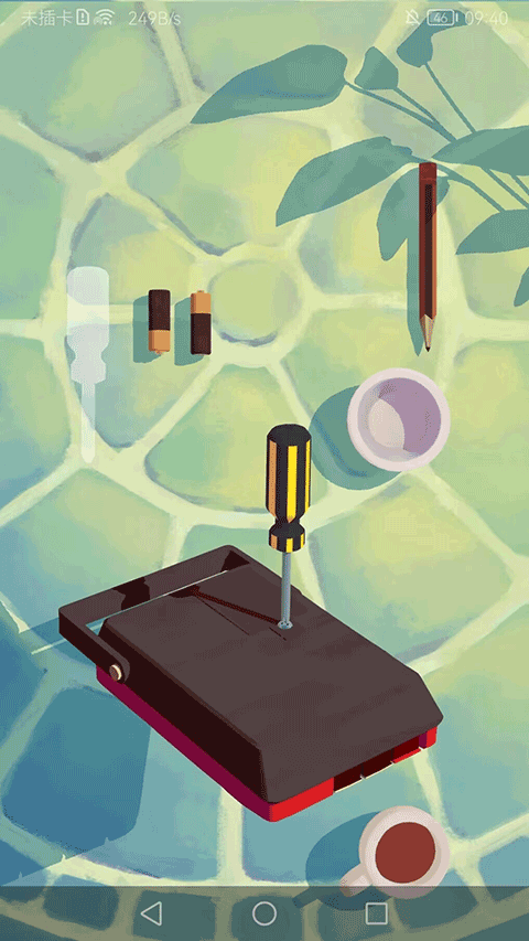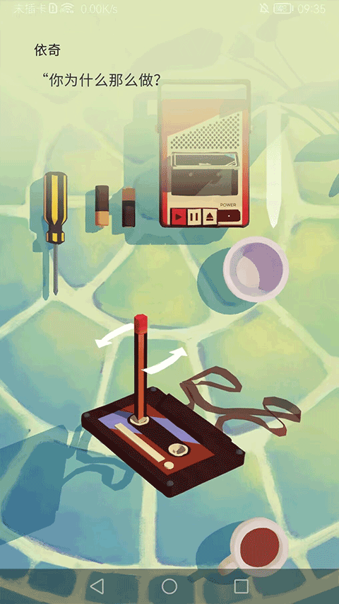 2、点击磁带,然后长按铅笔拖动到磁带处,旋转铅笔将磁带复原后放回原处。