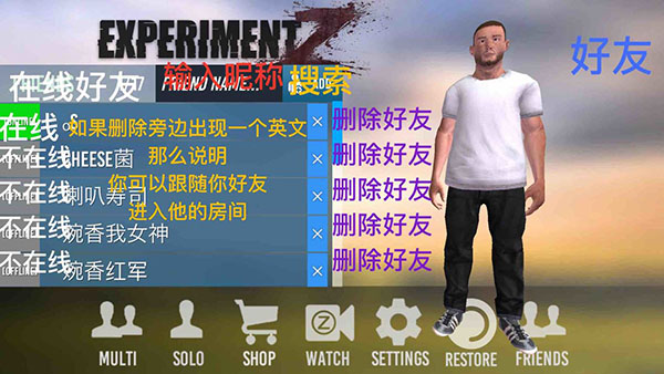 试验Z是一款最值得期待的移动多人僵尸生存游戏,拥有新一代海量开放的3D地图,同时游戏内有白天黑夜的交换,将给你最真实的游戏体验!此外游戏高度自由开放,你可以在其中使用任何武器、穿各色各样的衣物、并驾驶船、越野车、轿车等所有可驾驶的交通工具,而且游戏可单人进行游戏,也可以和你的朋友一起任意畅玩!