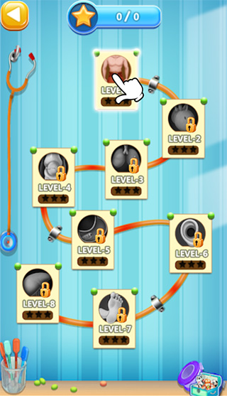 1、游戏采用所有人都可以接受的画面,不是真实的流血场景,轻松学习处理伤口;2、模拟治疗病人,体验做手术的感觉,把坏死的骨头剔除,然后快速缝合伤口;